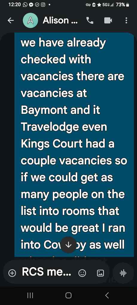 Jen continued to scramble to secure accommodations while Alison deflected.