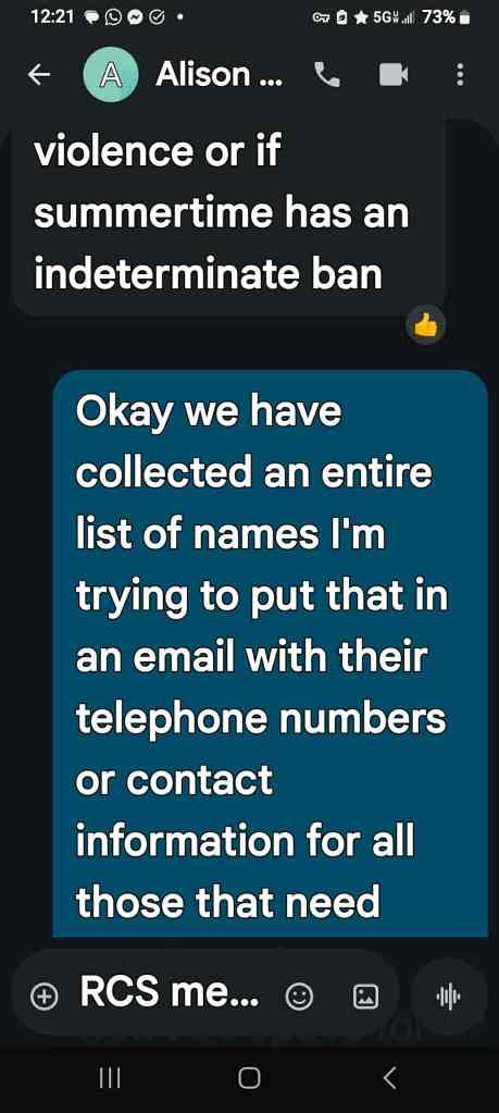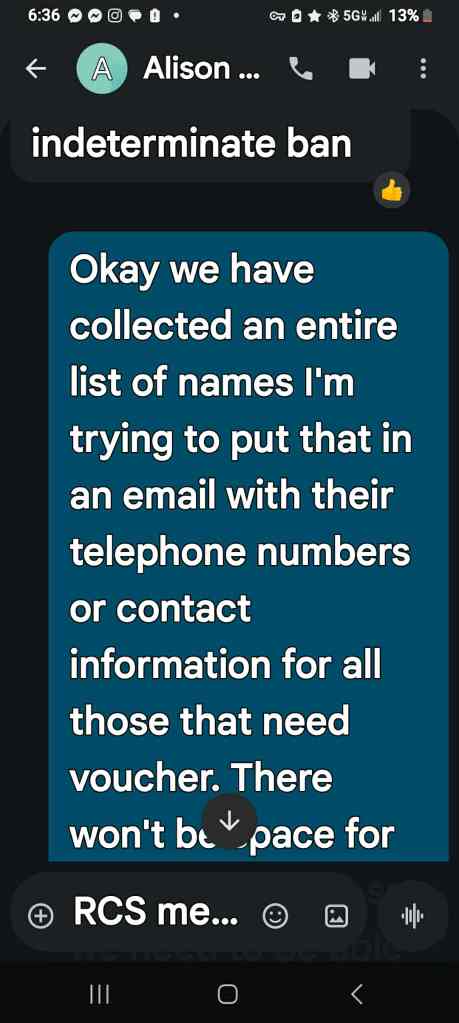 Jen was working on getting a list of names together so they could be covered by voucher. This is after two months of begging and demanding that the city create a navigable process.